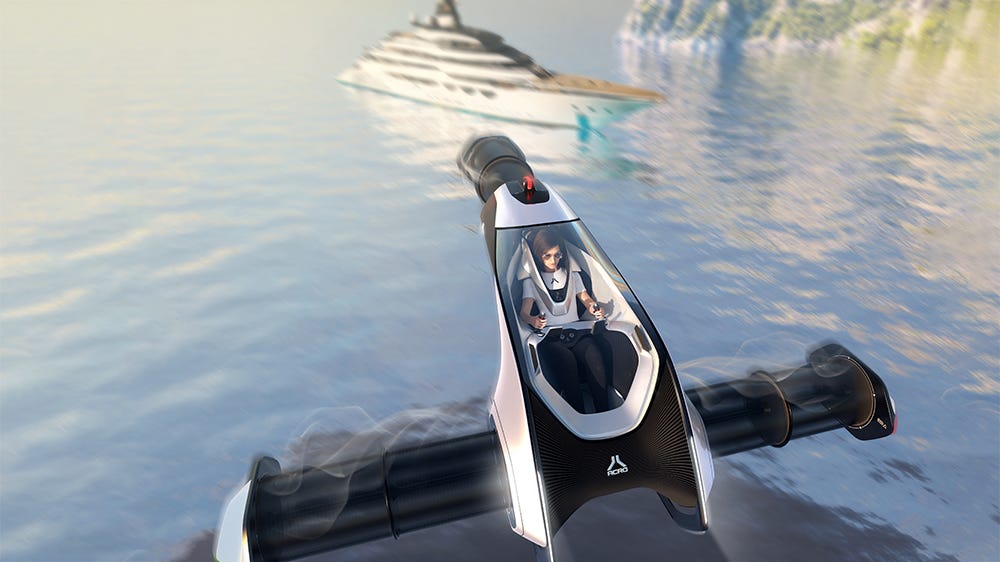 The innovative French design studio has unveiled a super futuristic aircraft concept tailored specifically for the maritime realm. Dubbed "Acro," this remarkably lightweight craft is engineered to ferry a single seafarer to and from motherships or coastal ports, while also venturing into the uncharted territories beyond the waves.