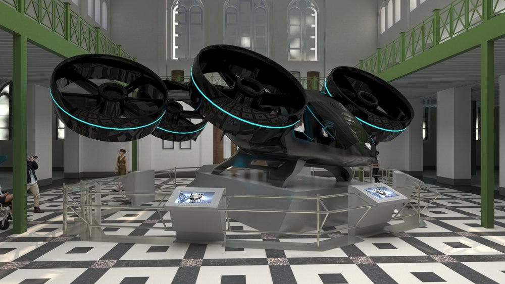 In 2021, the Nexus 4EX Air Taxi had its 15 minutes of fame at the Smithsonian’s new Arts and Industries building, part of the FUTURES exhibition. Sadly I missed it, but here’s a pic: