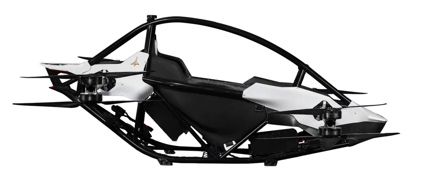 This one created by Opener caught my eye - a few years ago when they did some public tests. It’s an eVTOL that seems to be progressing well, and it looks sleek and user friendly. The 2 ‘ground effect’ style wings will also help with the range of this vehicle (currently 20m). Recent news includes BlackFly’s first customer taking their order. Storage to sky in 30 minutes, disassembles and fits onto a 16’ trailer, and guess what - Pilot license not required!